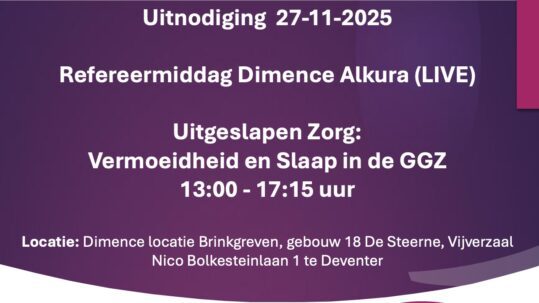13 december, 2024Dimence Alkura organiseert een refereermiddag op 27 november omtrent het thema slaap in de GGZ. ...
